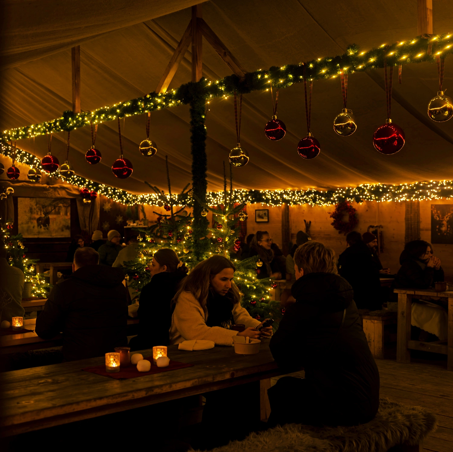 Rustikale Holzmöbel, flauschige Decken und eine liebevoll gestaltete Weihnachtsdeko erwarten Sie in unseren urgemütlichen Almhütten, die Ihnen für bis zu 110 Personen Platz bieten. In diesem Jahr bieten wir Ihnen 3 Almhütten auf unserem StadtParkZauber – was kann es Schöneres geben?